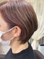 襟足がタイトに首にそうショートボブ*乾かしただけでまとまるようになっています。カラーはアルティストカラーのモーブピンクでくすみのあるぴんくに。艶とくすみの両方を併せ持つ万能な色味になっています。