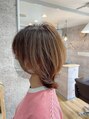 くびれがしっかりと出来るようにカットしています。丸顔・面長・えら張りなど色々な顔の形がありますが、顔の形を選ばずどの方でも似合うスタイルです。カラーはベージュにして柔らかさを演出しています。