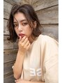 切りっぱなしのバブベースに少し顔まわり動きのあるレイヤーを入れて正面から動きのある印象につくったスタイル。カラーはベージュ系のブラウンですが、ヘアスタイルの動きにより透明感が出ます。
