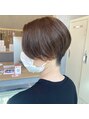 襟足をすっきり刈り上げる事でかっこよさもプラスされマッシュショートでお洒落さ女性らしさも残しつつ柔らかいモカブラウンのお色で大人っぽさも☆
