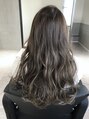☆レイヤーベースに毛先の柔らかさを出すためにドライカットしてカラーはミドルレンジかハイライトでベースが8レベルのブルージュ