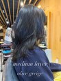 ミディアムレイヤースタイルオリーブグレージュカラー