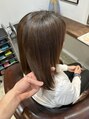 うねり・広がりが出やすい髪質を、美髪矯正で自然な丸みと艶感のあるストレートに。強いくせが出やすい内側もしっかり整え、乾かすだけでまとまる仕上がりにしています。「真っ直ぐすぎない」「柔らかく見える」大人女性におすすめのストレートです。
