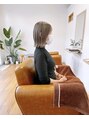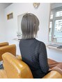 外ハネボブ。グレージュ。ダブルカラー。前回施術のブリーチ履歴を活かして、グレージュを重ねています。ブリーチ後に再度カラーを重ねるダブルカラーです。*こちらをご希望の際には通常の「ワンカラー」に「デザインカラー」を選定してご予約くださいませ。