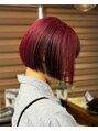 ぱつっとボブのスタイルにデザインカラー。レッドとブラックのカラーでチラッとブラックが見えるように調整。カラーでよりカットが可愛く見える。デザインカラーオススメです!