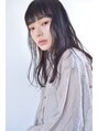 モードカジュアル 黒髪パッツン前髪 ダークブルーアッシュ