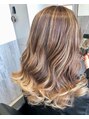 少し大きめなハイライトチップをいれて全体的に明るめに♪くすませてない外国人風なブロンド系カラーが今回のポイントです!傷んだ毛先はこまめにカット