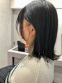 前髪のみポイントでストレート!ストレートとブルーブラックの相性は〇中のインナー部分をアッシュベージュでより目立ちやすく!外ハネボブに出来る感じでカット!
