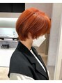 ダブルカラー(ブリーチ1回)毛先ブリーチ履歴あり。根元のブリーチリタッチした後、オレンジの色にレッドの補色をプラス!丸みあるマッシュヘアーでオシャレに(^^)