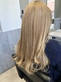 ピンクベージュ→色抜けしたブロンドヘア。履歴によってダメージ部分は異なっていたりありますが、違和感ない色味を作っています。