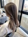 インナーカラーよりもナチュラルに見えるイヤリングカラー。ロングヘアなので巻いた時も映えて可愛いポイントカラーに。全体的にマロンベージュカラーで柔らかい春っぽいカラーに。
