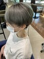 クールな女性のショートスタイル。全体ブリーチ後、シルバーアッシュをオンカラー。