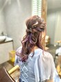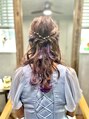 毛先は外ハネに25ミリのコテでゆるめに巻いたハーフアップです。インナーカラーがとっても可愛いスタイルです。