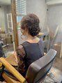 ルーズにまとめています。結婚式お呼ばれヘアで1番人気♪