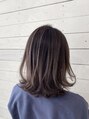 鎖骨の長さで外ベースに切りつつ、ほんのりやわらかさを出したスタイルになります。カラーリングもやわらかい印象に合わせてフォギーベージュ系で染めた仕上がりになります。