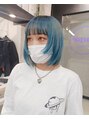 フルブリーチ2回~。しっかり脱色したベースにターコイズブルーをオンカラー。ショート/ショートボブ/ボブ/レイヤーボブ/レイヤーカット/ウルフカット/ハッシュカット/ミニボブ/クラゲカット/ハンサムショート/メンズカット/メンズヘア/メンズパーマ/パーマ