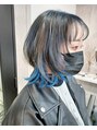 ブリーチ2回~。しっかり脱色したインナーにカラーバターのブルーをオンカラー。クラゲカット/ウルフカット/カラーバター/レイヤーカット/オレンジカラー/ピンクカラー/前髪カット/白髪染め/メンズパーマ/ハイライト/メンズハイライト/ミニボブ/ボブ/学割U24
