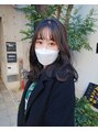 全体はワンレンにカット。顔周りの毛を作り、全体は波巻きにし、顔周りにくびれができるように作った韓国風ヘアー。