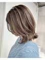 全体にハイライト&ローライトを入れ、上からグレーベージュをオンカラー。カットは肩にかかるくらいのボブに少し動きを出すレイヤーをいれた大人っぽいデザイン。