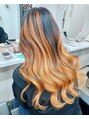インナーブリーチ1回~2回必要。表面はブラックに。内側をカラーバターでペールオレンジにデザインしたアンブレラカラー。
