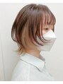 インナーブリーチ1回~2回必要。ホワイトベージュのインナーにウルフカットのデザインスタイル。