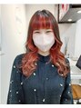 インナーブリーチ1回~2回。カラーバターミックスのオレンジピンクをオンカラー。