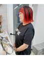 ブリーチ1回~。カラーバターをミックスしたレッドのアンブレラデザインカラー。