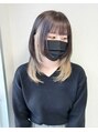 インナーブリーチ1回~2回。表面はダークカラーとインナーはハイトーンブロンドのコントラストをきかせたデザインカラー。