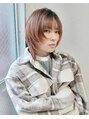 ブリーチなし、ベージュカラー。顔周りを、切り込んだシャープなウルフカット。