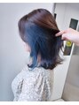 イヤリングブリーチ2回~。脱色したイヤリング部分にディープブルーアッシュをオンカラー。