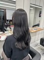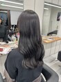 一見黒髪に見えますが、光に当たるとグレイッシュな艶感がでる赤みやオレンジみを抑えたクールトーン。地毛風の黒髪でアッシュやブルー系をすこしまぜた透明感がでるカラーです。