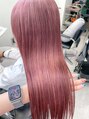 7. ダブルカラーピンクベージュピンクカラーケアブリーチミニボブ