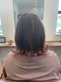 フェイスラインから入れたベビーピンクのインナーカラーが鮮やかな切っぱなしボブです♪ブリーチが必須になりますが、ブリーチオンカラーならではの透明感抜群のカラーです!