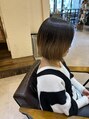 ショートボブ×ホワイトシャドールーツです!ブリーチは2回させて頂きました!陰影をつける為に根本に1~2センチは暗くし影を作ります。掻き上げた時にもグラデーションが素敵に見えるようにデザインさせて頂きました!