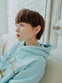 少し個性をだしてスッキリと短くショートにしたスタイルです。マッシュ間をだすためにワイドバングで横とほぼ同じ長さにしています。その中でも女性らしさを出すために襟足は短すぎないくらいにカットしています。