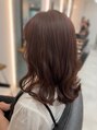 ツヤ感のあるブラウンカラーに、ゆるく動くミディアムレイヤー。上品で柔らかい印象の大人スタイルです。【気に入って頂いたスタイルは、ブックマークをしてご提示ください】