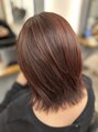 赤みを抑えすぎないレッドブラウンで、艶感を引き出した大人ボブ。上品で扱いやすいスタイルです。【気に入って頂いたスタイルは、ブックマークをしてご提示ください】