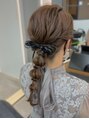 清瀬で人気のリボン付き編みおろしアレンジ。甘さと大人っぽさのバランスが◎で、お呼ばれや結婚式におすすめです。【気に入って頂いたスタイルは、ブックマークをしてご提示ください】