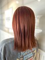 艶感がきれいに出るレッドブラウンのミディアムスタイル。毛先を整えたシンプルなデザインで、カラーの深みと髪の質感が引き立つ仕上がりです。【気に入って頂いたスタイルは、ブックマークをしてご提示ください】