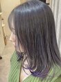 毛先にラベンダーの色を入れた裾カラー。いつものブリーチとは違うスタイルに気分も高まります。全体のグレーカラーはブリーチ2回~必要!ダメージ履歴に合わせてお薬を選定しお手入れしやすいヘアへ[ブリーチ/裾カラー/グレーカラー/ラベンダー/ミディアム]