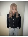 ブリーチベースに柔らかいミルクティーベージュをオン。赤みを抑えた透明感カラーで、くびれミディとの相性抜群。巻いてもストレートでも可愛い万能スタイル。