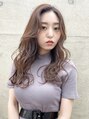 32mmのコテで波巻き。【気に入ったスタイルは「ブックマークする」ボタンを押して、ご来店時ご提示ください】切りっぱなしロブ,抜け感,くせ毛カット,小顔ボブ,ショコラベージュ,ヘムライト,かき上げ,くびれヘア,ミニウルフ,イヤリングカラー