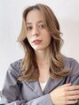 外ハネワンカール_34mmのコテで外ハネにし顔周りはリバースで。【「ブックマークする」ボタンを押して、ご来店時ご提示ください】パープルカラー,オレンジカラー,ミルキーベージュ,3Dカラー,抜け感,艶カラー,透け感,ココアベージュ,ツヤ髪,ホワイトカラー