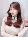 32mmのコテで全体をリバース巻きにし、オイルをつけた後にくしでとかして馴染ませて艶のあるウェーブにする【気に入ったスタイルは「ブックマークする」ボタンを押して、ご来店時ご提示ください】ダスティーピンク,バイカラー,栗色,ブラッドオレンジ,波巻き