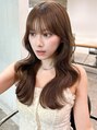 暗めカラー顔周りレイヤーロング韓国ヘア_F21074
