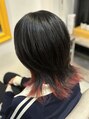 たっぷりレイヤーのウルフカットで上が短くなっているのでインナーカラーが見えやすく!見える範囲や幅は調整できるのでご相談ください。顔周りもレイヤーでうちに巻くとちょっぴり可愛らしくアレンジできます。◎