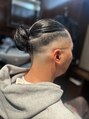 サイドとバックはフェードで仕上げてスッキリとし、トップは長さを残して量感を調節してます。今もなおブームのマンバンスタイルです。