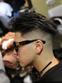 少し尖ったリバースパートスタイル!2ヶ月前のパーマを活かし、横後ろはガッツリ刈り上げ。ラインアートも入れ、トップはアッシュカラー。