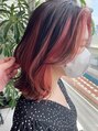 アンブレラカラー/サーモンピンク/一周インナーカラー/前髪無し
