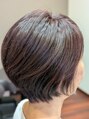ネイブギリギリまで短くして、頭の丸みを強調したスッキリのショートです。カラーは白髪ぼかしで染めているので、ツヤ感と透明感があります。今回は秋らしいワンインレッドに染めています。